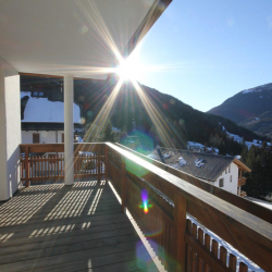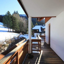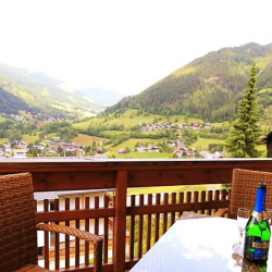 Gyönyörű kilátás a falura és a hegyoldalra - ez a látvány tárul elénk, ha a teraszon üldögélünk. Az apartman jelentős tárolásra alkalmas helyből is bővelkedik: a földszinten külön tároló van a síruhának és -felszerelésnek vagy akár babakocsinak is, a bejáratnál pedig kis tároló a kabátoknak és cipőknek. A garázs két autó számára biztosít parkolási lehetőséget.